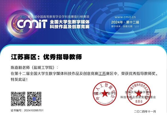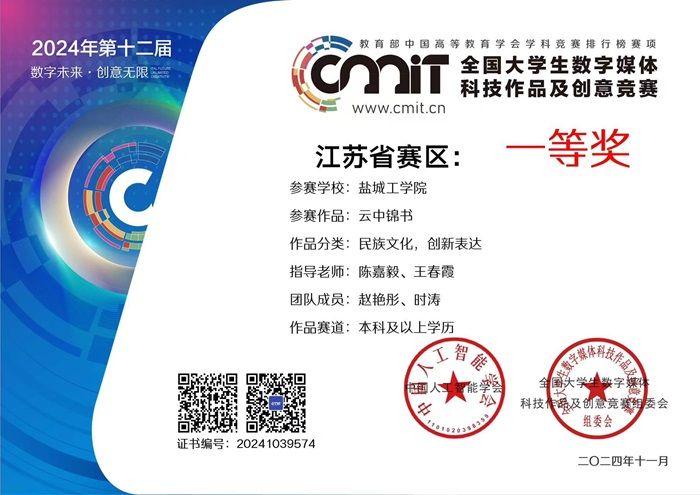 我院学生获2024年全国大学生数字媒体科技作品及创意竞赛国赛三等奖