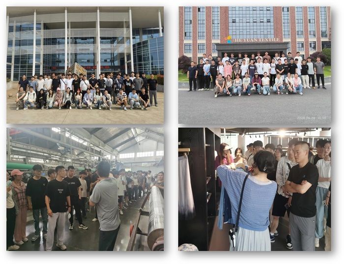在生产实习的第一周,学生们参观了江苏华艺集团与江苏合源纺织科技有限公司,他们亲眼见证了扎染艺术的丰富多彩与印染生产线的高效运作,了解了印染技术的创新与发展。学生们不仅学到了如何操作设备和了解安全规范的重要性,还深刻体会到了工厂安全规范的重要性。