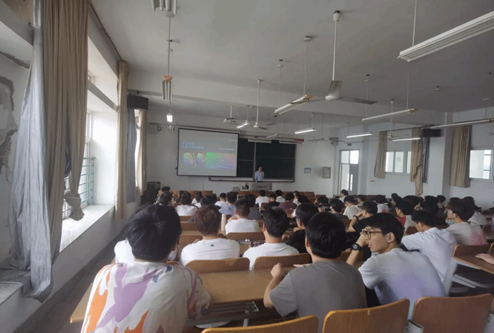随后,东华大学YP色彩研究中心的许仲哲主任为学生们带来了一场精彩的讲座。主题为“精准色彩管理:染整行业的技术革新与实践”,让学生们对色彩学有了更深刻的认识。