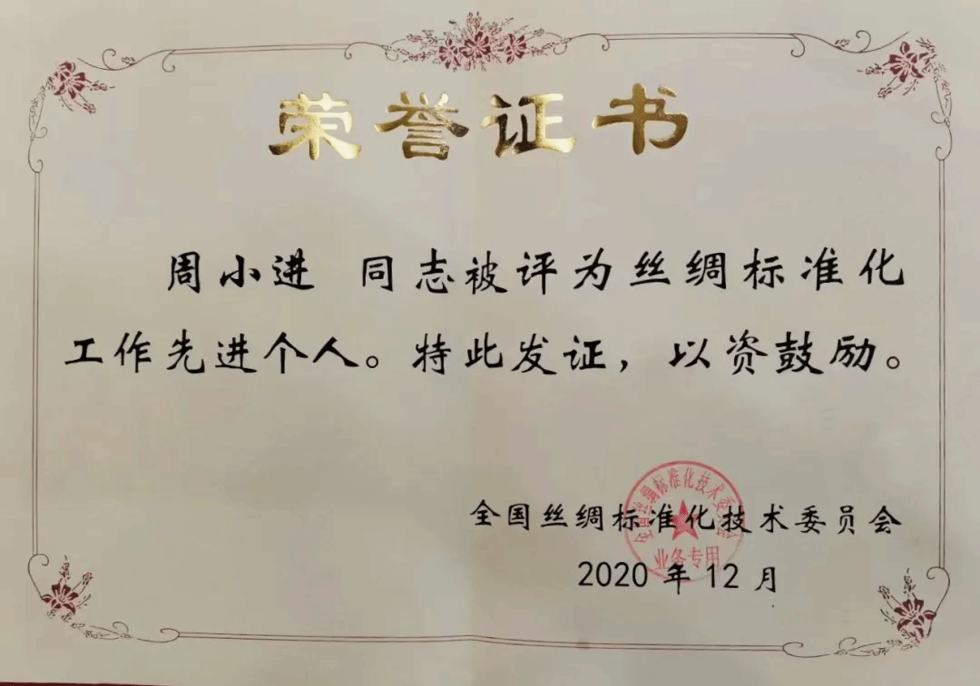 他带领专业团队以苏州传统文化为切入点,深入推进苏绣、苏州丝绸品质认证工作,帮助企业通过现代化的质量管理手段对生产过程实施管理,提高产品质量,提升满足消费者不断增长的产品需求的能力,增进市场对苏绣、苏州丝绸产品的认可和信心,推进丝绸产品品牌建设,提升区域经济竞争力,打造江南文化高地。全市共有21家企业37个丝绸产品、7家企业9个纯手工苏绣产品通过高端产品品质认证,擦亮了“苏工苏作”的金字招牌。市纤检院荣获“全国丝绸标准化工作先进集体”称号。2022年11月,市纤检院获得CNCA产品认证机构资质,成为苏州市场监管系统中首家具有产品认证资质的技术机构,填补了苏州市纺织产品认证机构的空白。